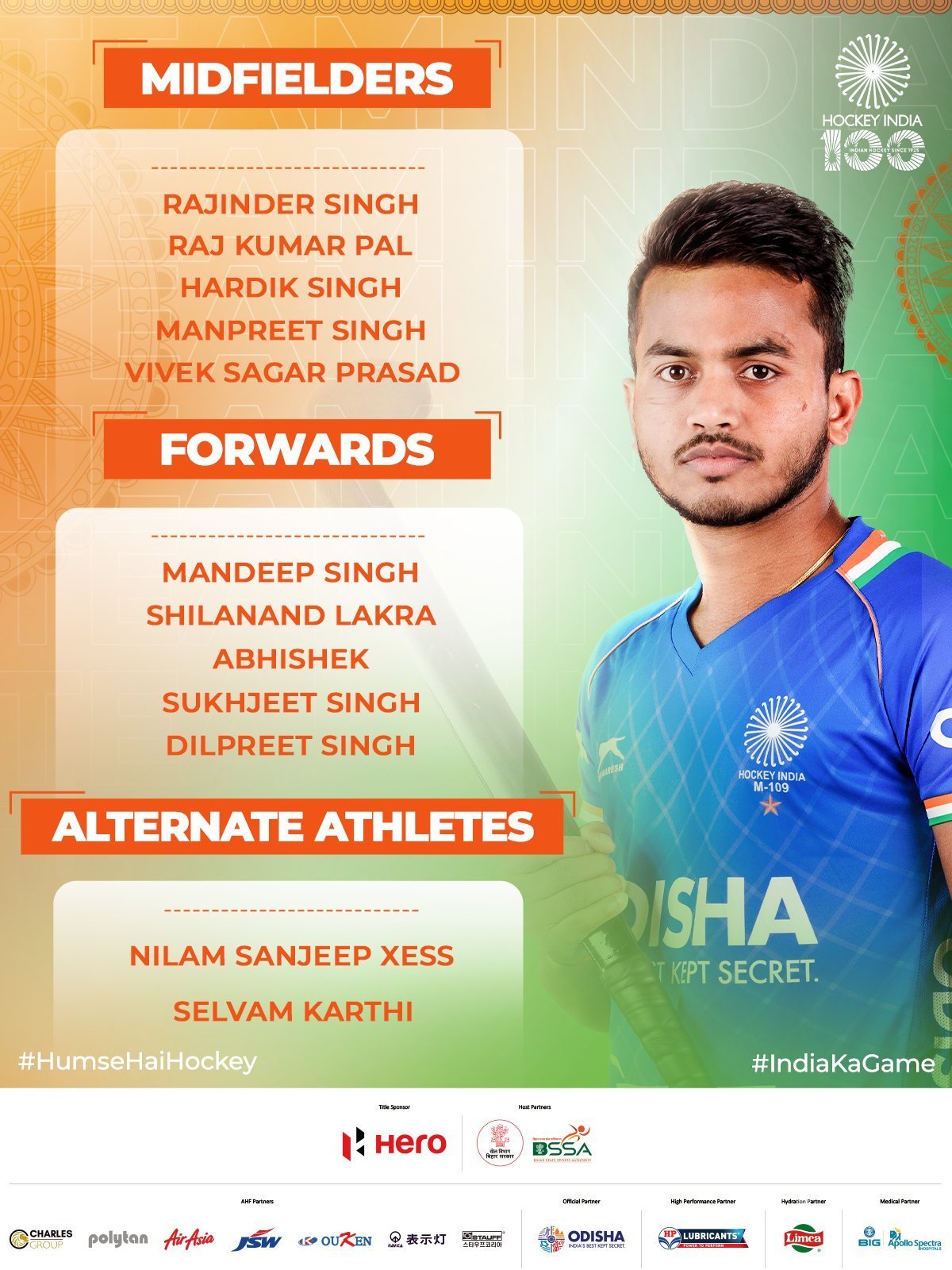 - மிட்ஃபீல்டர்கள் (நடுவரிசை வீரர்கள்): துணை கேப்டன் ஹர்திக் சிங், விவேக் சாகர் பிரசாத், சும்ஜீத், மற்றும் நீலகண்ட ஷர்மா போன்றோர் நடுவரிசையை வலுப்படுத்துகின்றனர். இவர்களின் ஆட்டம், பந்தை ஃபார்வர்ட் வீரர்களுக்குக் கொண்டு செல்வதில் முக்கியப் பங்கு வகிக்கும்.