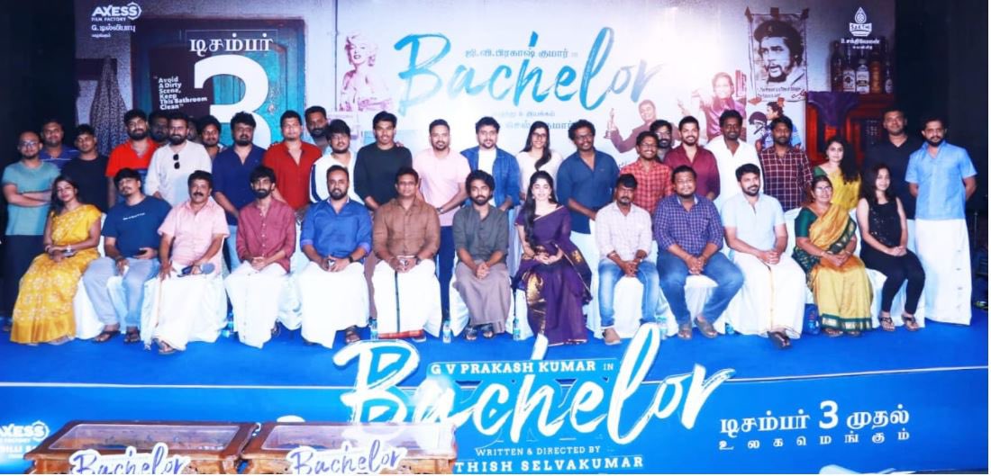 Axess Film Factory சார்பில் தயாரிப்பாளர் G.டில்லிபாபு வழங்கும், சதீஷ் செல்வகுமார் இயக்கத்தில் நடிகர் GV பிரகாஷ் நடித்துள்ள திரைப்படம, “பேச்சிலர்” . டிரெய்லர் வெளியான போதே, தமிழகமெங்கும் பெரும் எதிர்பார்ப்பை உண்டாக்கியுள்ள இப்படம், இக்காலத்திய இளைஞர்களின் வாழ்க்கையை தத்ரூபமாக பிரதிபலிக்கும் வகையில் உருவாகிறது. உலகமெங்கும் திரைவெளியீடாக 2021 டிசம்பர் 3 ஆம் தேதி வெளியாகும் இப்படத்தின் பத்திரிக்கை ஊடக சந்திப்பு, நேற்று சென்னையில் பத்திரிக்கையாளர் முன்னிலையில் படக்குழுவினர் கலந்துகொள்ள இனிதே நடைபெற்றது.