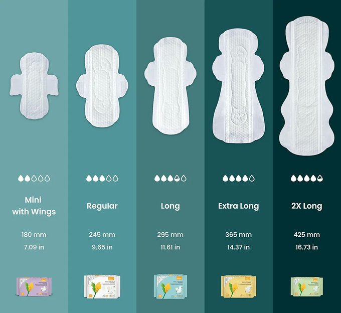 Long & Extra Long (295mm – 365mm): இவை அதிக ரத்தப்போக்கு உள்ளவர்களுக்குப் பகல் நேர பாதுகாப்பிற்காக வடிவமைக்கப்பட்டவை.