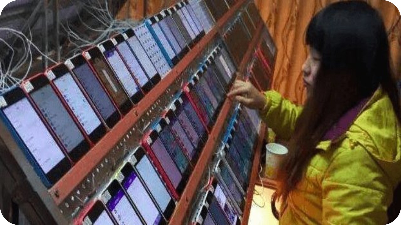 - வரிசையான ஸ்மார்ட்போன்கள்/டிவைஸ்கள்: இந்த அமைப்புகளில் நூற்றுக்கணக்கான அல்லது ஆயிரக்கணக்கான மலிவு விலையுள்ள ஸ்மார்ட்போன்கள், டேப்லெட்டுகள் அல்லது சிம் கார்டுகள் கொண்ட சாதனங்கள் பயன்படுத்தப்படுகின்றன. இவை அனைத்தும் ஒன்றாக இணைக்கப்பட்டு, சார்ஜ் செய்யப்பட்டிருக்கும்.