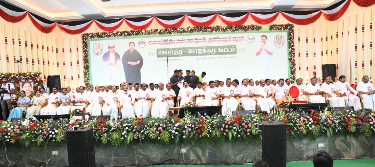 சென்னை, வானகரத்தில் அமைந்துள்ள தனியார் திருமண மண்டபத்தில் அனைத்திந்திய அண்ணா திராவிட முன்னேற்றக் கழகத்தின் (அதிமுக) செயற்குழு மற்றும் பொதுக்குழு கூட்டம் மிகச் சிறப்பாக நடைபெற்றது. இக்கூட்டத்திற்கு, கழகத்தின் பொதுச் செயலாளரும், சட்டமன்ற எதிர்க்கட்சித் தலைவருமான எடப்பாடி பழனிசாமி (இபிஎஸ்) தலைமை வகித்தார். இக்கூட்டத்தில், கட்சி எதிர்கொள்ளும் சவால்கள் மற்றும் வரவிருக்கும் சட்டமன்றத் தேர்தலுக்கான வியூகங்கள் குறித்து விவாதிக்கப்பட்டது. மேலும், கட்சியின் அவைத்தலைவராக இருந்த தமிழ்மகன் உசேன் அவர்களின் மறைவையொட்டி, முன்னாள் அமைச்சர் பொன்னையன் அவர்கள் ஒருமனதாகப் புதிய அவைத்தலைவராகத் தேர்ந்தெடுக்கப்பட்டார்.