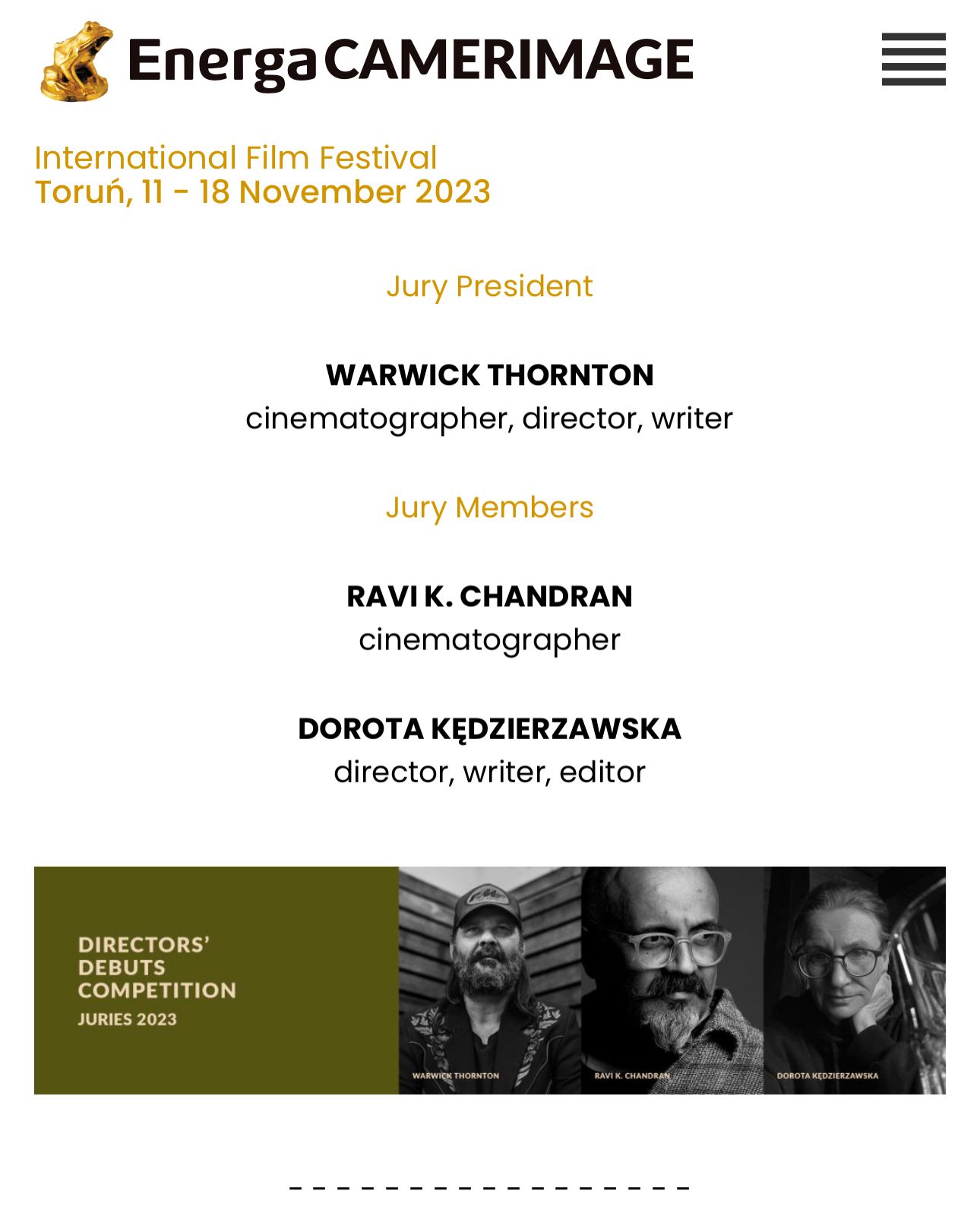 நாற்பது வருடங்களாக ஒளிப்பதிவில் ஈடுபட்டுள்ள ரவி கே சந்திரன், ‘கன்னத்தில் முத்தமிட்டால்’, ‘பிளாக்’, ‘மை நேம் இஸ் கான்’ உள்ளிட்ட பல மாபெரும் வெற்றி பெற்ற மற்றும் விருதுகளை குவித்த பன்மொழி திரைப்படங்களின் ஒளிப்பதிவாளர் ஆவார். “கேமரிமேஜ்“ என்பது சர்வதேச அளவில் புகழ்பெற்ற திரைப்பட விழாவாகும். ஒளிப்பதிவு கலையை இது கொண்டாடுகிறது. உலகெங்கிலும் உள்ள திரை கலைஞர்களால் ஆஸ்கருக்கு சமமாக கருதப்படும் இந்த விழா, விருது பெறும் திரைப்படங்களையும் கலைஞர்களையும் தேர்ந்தெடுப்பதில் மிகுந்த கவனம் செலுத்துவதற்காக புகழ் பெற்று விளங்குகிறது. மேலும், ஆஸ்கரை போல் இல்லாமல், குறிப்பிட்ட பிரிவுகளில் விருதுகளை வழங்கி திரைப்பட உருவாக்க கலை மீது தனக்குள்ள அர்ப்பணிப்பை இது பறைசாற்றுகிறது.