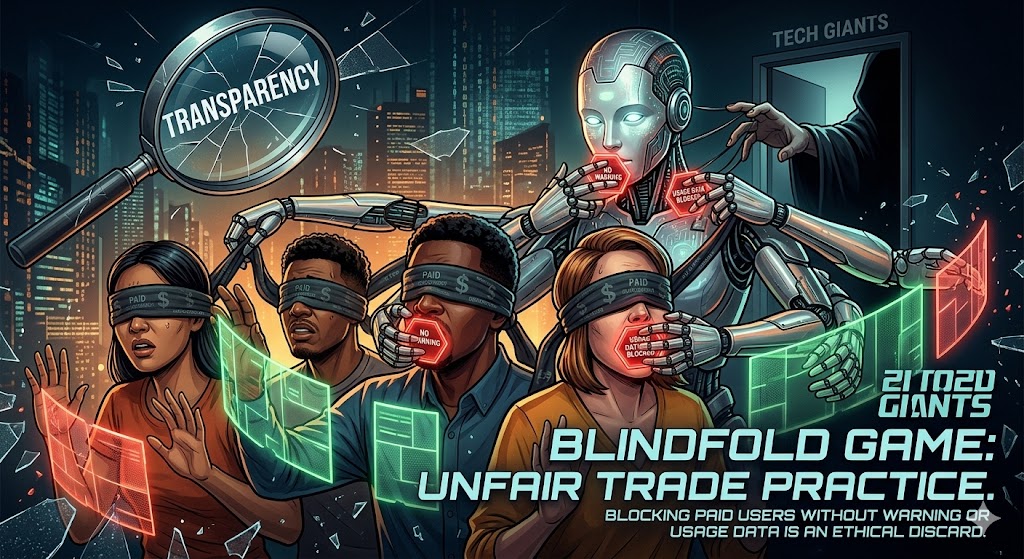 செயற்கை நுண்ணறிவு (AI) என்பது மனித குலத்தின் அடுத்த கட்டப் பாய்ச்சல் என்று மார்தட்டிக்கொள்ளும் நிறுவனங்கள், அதன் பின்னணியில் ஒளிந்திருக்கும் ‘வெளிப்படைத்தன்மை’ (Transparency) என்ற அறத்தைக் காற்றில் பறக்கவிட்டுள்ளன. மாதம் ஆயிரக்கணக்கில் பணம் செலுத்திச் சந்தா (Subscription) வாங்கும் பயனர்களை, உரிய கணக்கீடு இல்லாமல் திடீரெனத் தடுப்பது என்பது வெறும் தொழில்நுட்பக் கோளாறு அல்ல; அது ஒரு முறையற்ற வர்த்தகப் போக்கு.