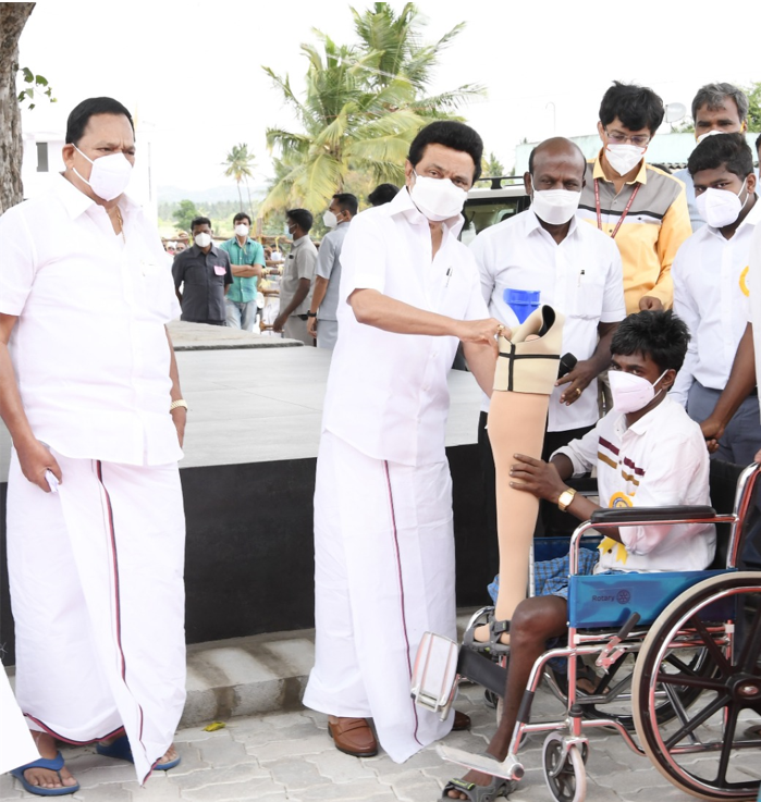 அதனைத் தொடர்ந்து, கால்களை இழந்த 2 நபர்களுக்கு 4 இலட்சம் ரூபாய் மதிப்பிலான செயற்கைக் கால்கள், சிறுநீரகங்கள் செயலிழந்த ஒரு நபருக்கு வயிற்றினுள் டயாலிசிஸ் செய்யப்படும் முறைக்கான மருத்துவ உபகரணங்கள், கெலமங்கலம் ஊராட்சி ஒன்றியம், உனிசெட்டி ஆரம்பச் சுகாதார நிலையத்திற்கு உட்பட்ட பெட்டமுகுளாலம் பகுதி மலைவாழ் மக்கள் பயனடையும் வகையில் ஒரு 108 அவசரகால ஆம்புலன்ஸ் ஊர்தி ஆகியவற்றை வழங்கியதோடு, கர்ப்பிணித் தாய்மார்க்கு “HBs Ag” என்ற மஞ்சள் காமாலை நோய்க்கான விரைவுப் பரிசோதனைத் திட்டத்தை முதலமைச்சர் தொடங்கி வைத்தார்.