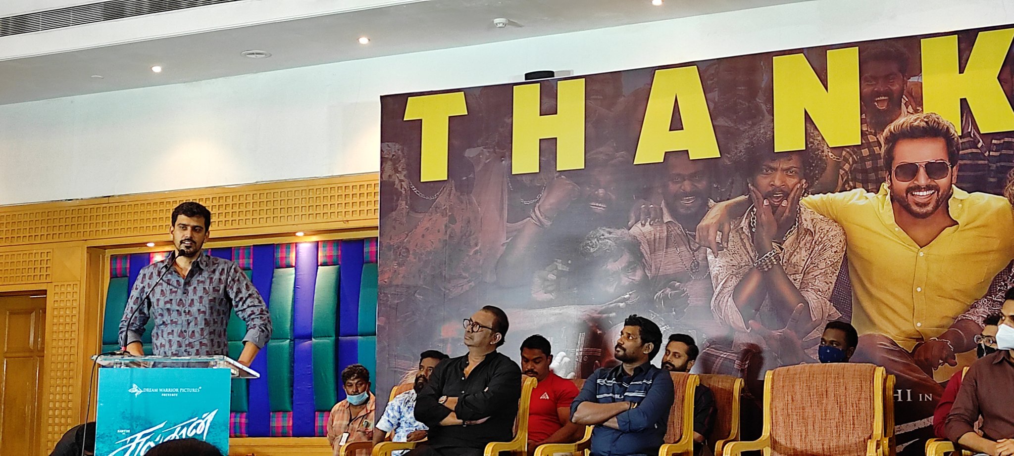 இந்த பெருந்தொற்றால் இப்படத்தின் தயாரிப்பாளர் எஸ்.ஆர்.பிரபு பொருளாதார ரீதியில் பாதிக்கப்பட்டிருந்தாலும் பிடிவாதமாக திரையரங்கில் வெளியிட காத்திருந்தமைக்கு நன்றி என்றார்.