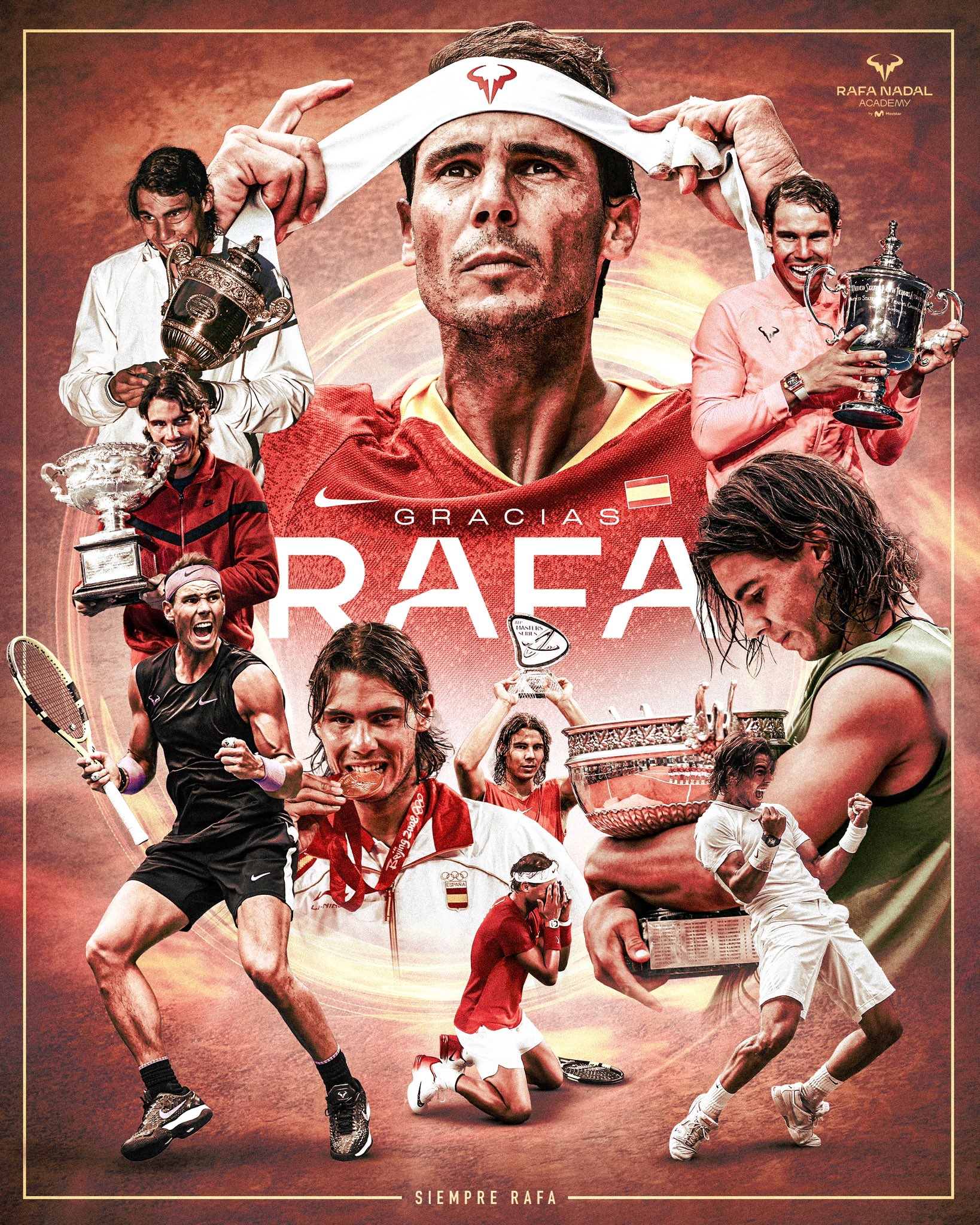 இதனைத் தொடர்ந்து ரஃபேல் நடால் பேசுகையில்,”அனைவருக்கும் குட்-பை சொல்ல வேண்டும் என்று விரும்புகிறேன்.அனைத்து சூழல்களிலும் எனக்கு ஆதரவாக இருந்த குடும்பத்திற்கு நன்றி கூறிக் கொள்கிறேன்.வாழ்வில் நடக்கவே இயலாத விஷயங்களில் கூட குடும்பத்தினர் அனைவரும் எனக்கு நம்பிக்கை கொடுத்துள்ளனர். அதேபோல் வெற்றியால் உச்சத்திற்கு சென்ற போதும்,அவர்களால் தான் நான் நிதானமாகவும், அமைதியாகவும் இருந்திருக்கிறேன். எதிர்காலத்தில் என்ன நடந்தாலும், அதனை எளிமையாக கையாள முடியும் என்று நம்புகிறேன்.அதற்காக பயிற்சிகளை செய்து வருகிறேன். டென்னிஸ் இல்லாமல் இருப்பது கடினம் தான். ஆனால் வாழ்க்கையில் நடந்த அனைத்து மாற்றங்களுக்கும் முறையான பயிற்சியும், அதற்கேற்ப தகவமைத்து கொண்டதும் தான் காரணம். இதற்கு மேல் டென்னிஸ் விளையாட முடியாது என்று என் உடல் சொல்லிவிட்டது. அதனை ஏற்றுக் கொள்ளவேண்டும். நான் கொஞ்சம் அதிர்ஷ்டசாலி என்று நினைக்கிறேன். எனது பொழுது போக்கையே தொழிலாக மாற்ற முடிந்தது. கிராண்ட்ஸ்லாம் கோப்பைகள், வெற்றிக் கணக்குகள் உள்ளிட்டவை எல்லாம் அனைவருக்கும் தெரியும். ஆனால் ரசிகர்களின் மனதில் ஒரு சிறிய கிராமமான மலோர்காவில் பிறந்த வளர்ந்த சிறந்த மனிதனாக நினைவில் இருக்க விரும்புகிறேன்” என்று தெரிவித்தார்.