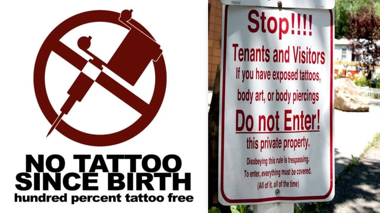 இது ஒரு டி ஷர்ட்டில் உள்ள வாக்கியம்!டாட்டூவுக்கு எதிரான போக்கு உலகமெங்கும் துவங்கியுள்ளது. சில பொது இடங்களுக்கு டாட்டூ குத்திய, உடலில் பெயிண்டிங் செய்தவர்களுக்கு அனுமதி இல்லை என்கிற அறிவிப்புகள் வைக்கிறார்கள்.